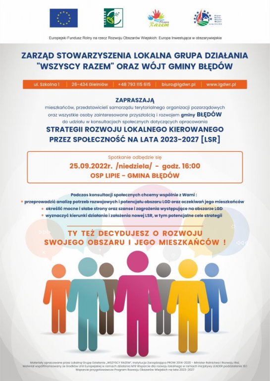 Lokalna Grupa Działania "Wszyscy Razem" zaprasza na spotkania konsultacyjne ws. nowej lokalnej strategii rozwoju dla obszaru 10 gmin wchodzących w skład Lokalnej Grupy Działania "Wszyscy Razem".